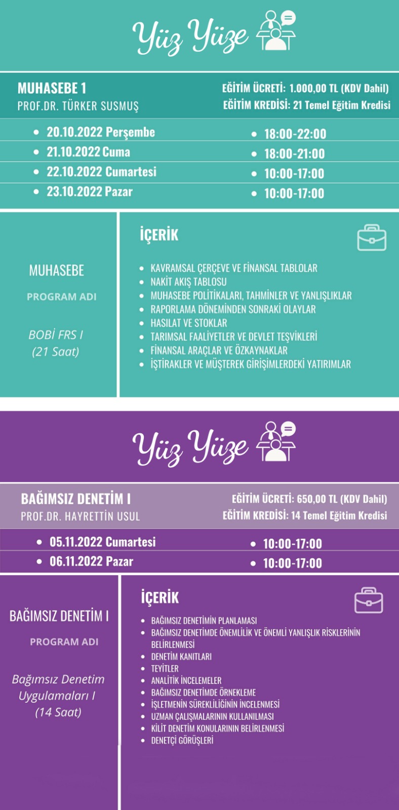 -----Yüz yüze Bağımsız Denetim I Programına ön başvuru yapmak için tıklayınız.