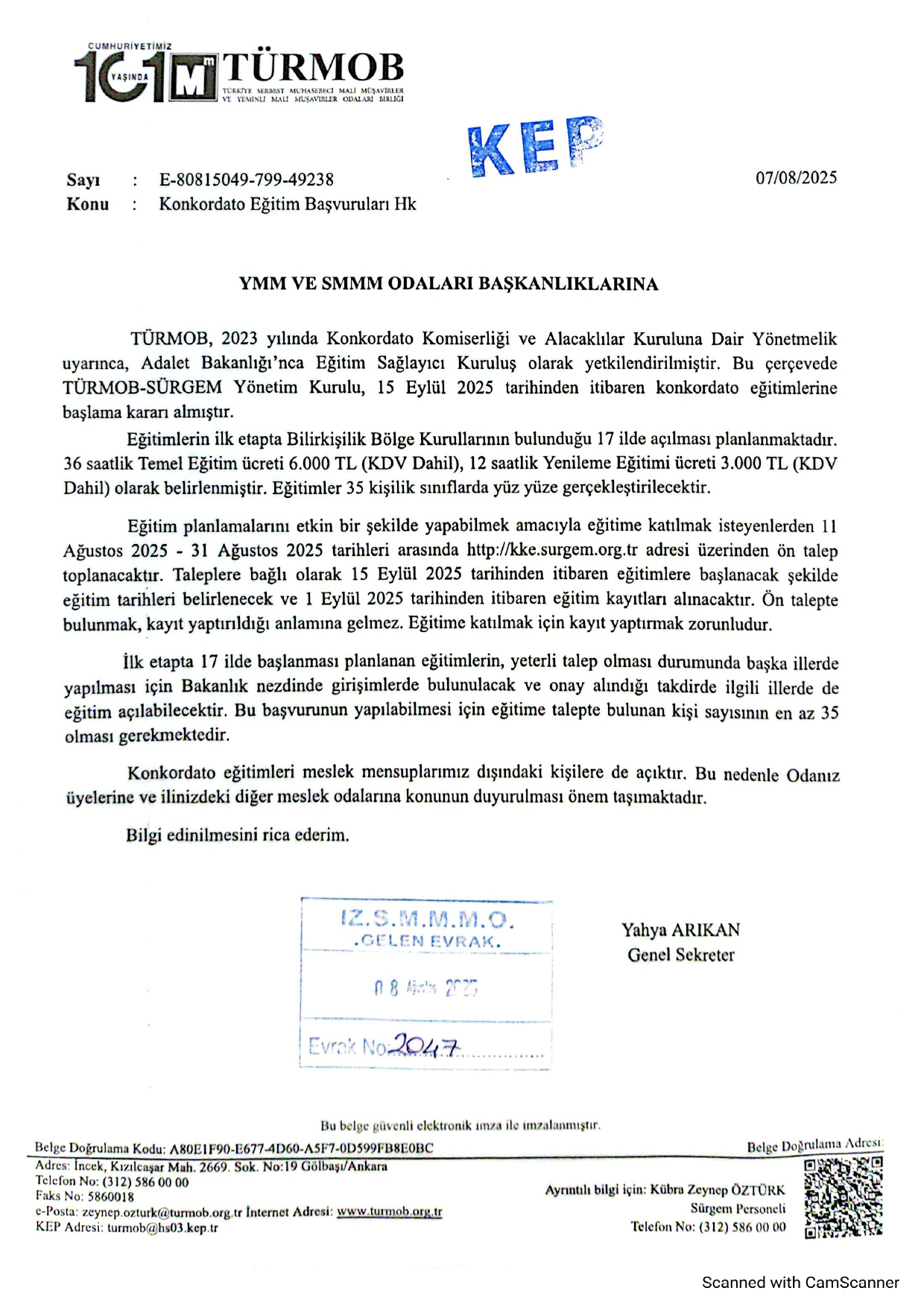 Yenileme Eğitimi Ücreti : 3.000,00 TL (KDV Dahil), (12 Saat)