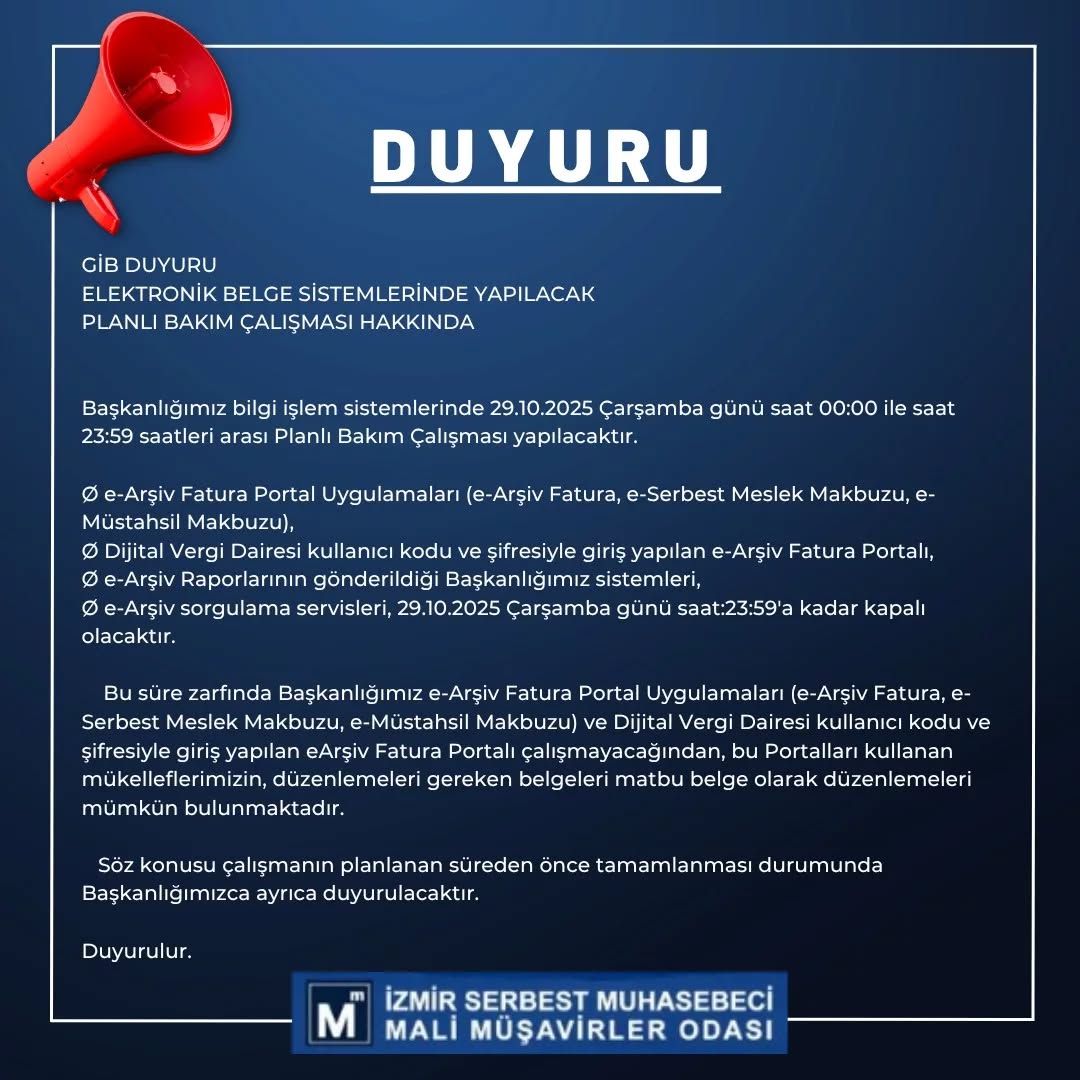 GİB'in Planlı Bakım Çalışması Duyurusu
