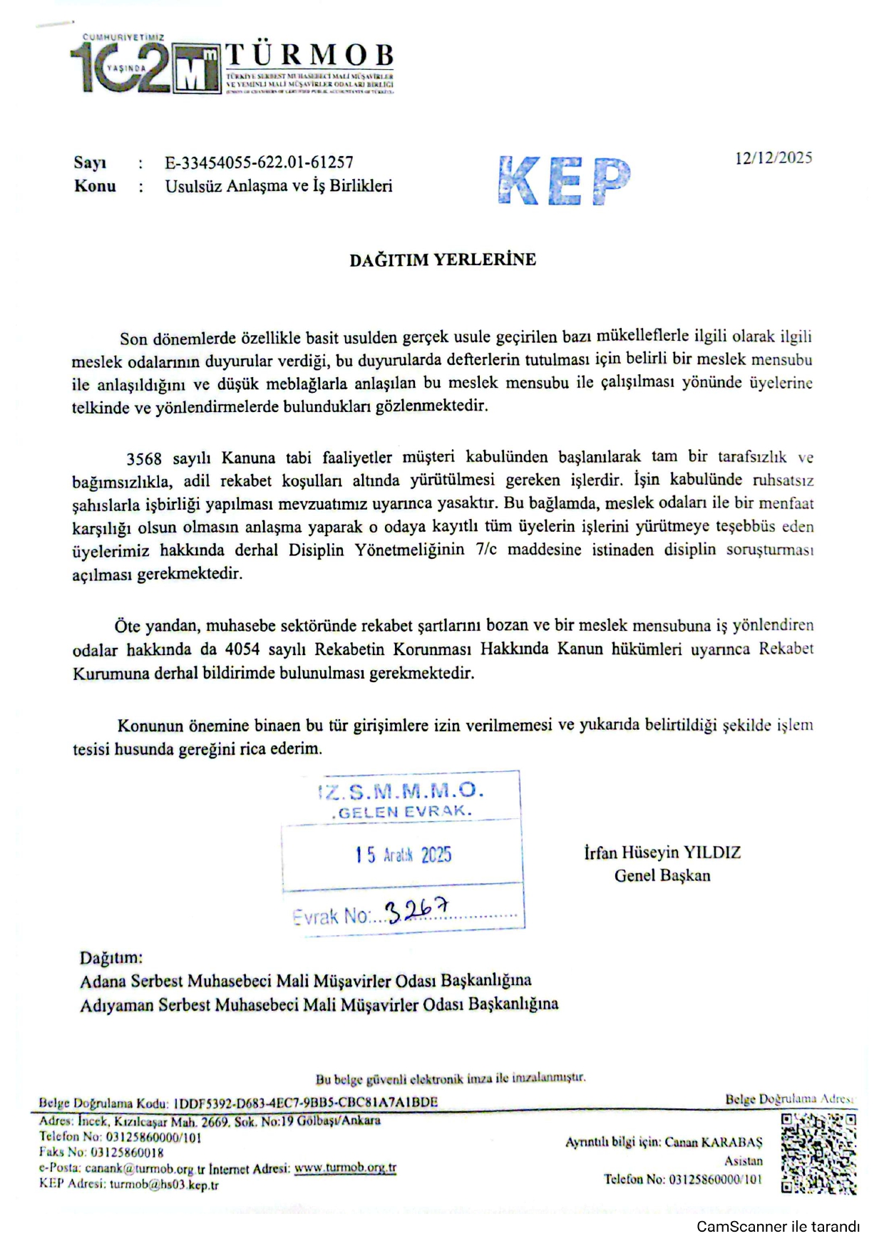586 Sayılı VUK Genel Tebliği Düzenlemesi Sonucu Usulsüz Anlaşma ve İş Birlikleri Hakkında TÜRMOB Yazısı 15 Aralık 2025 Pazartesi28