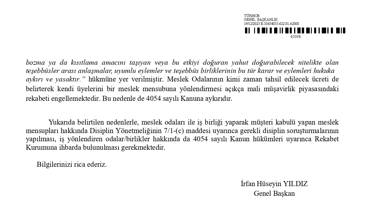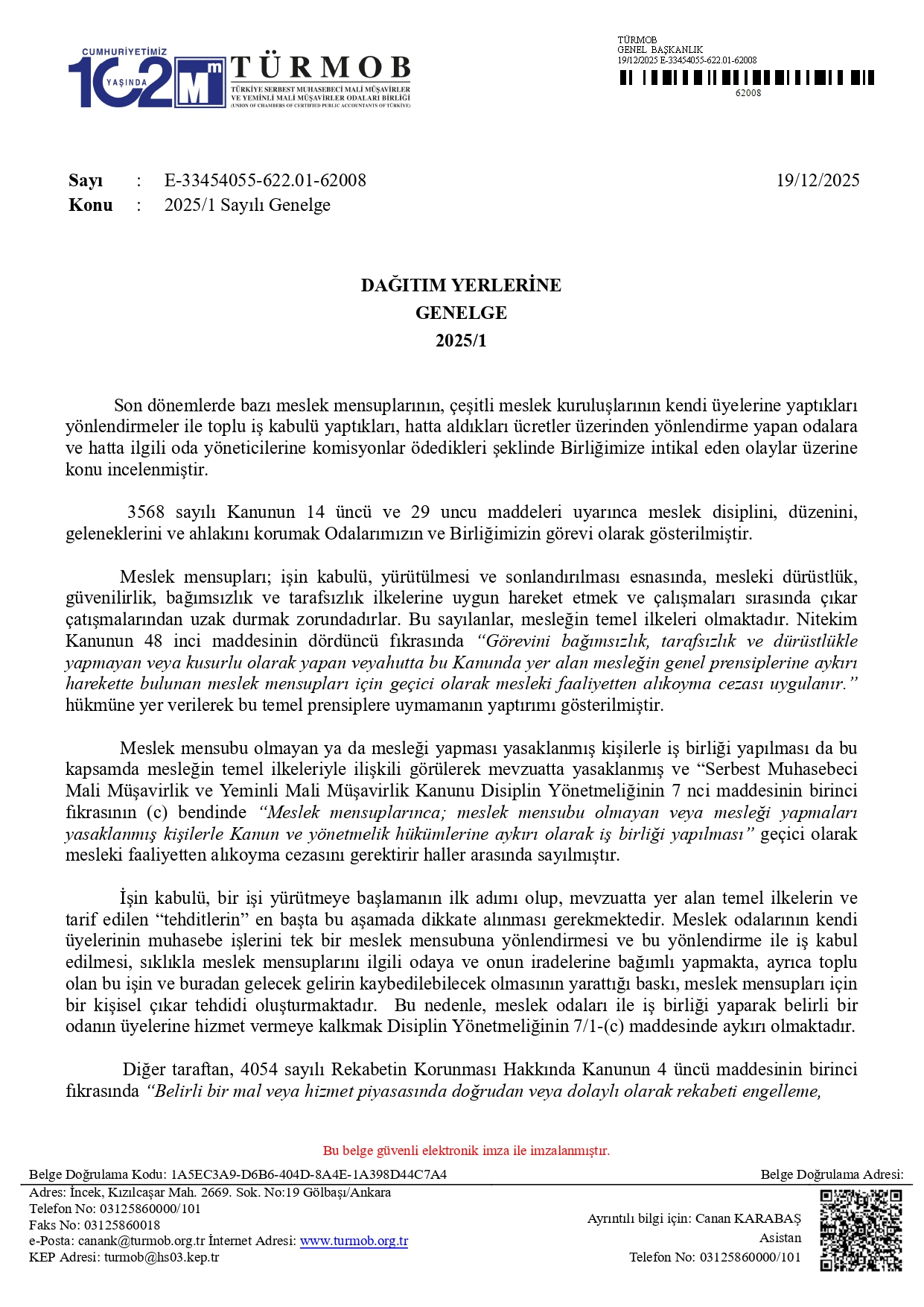 Meslek Odaları İle İş Birliği Yaparak Müşteri Kabulü Yapan Meslek Mensupları Hakkında TÜRMOB Genelgesi 22 Aralık 2025 Pazartesi68