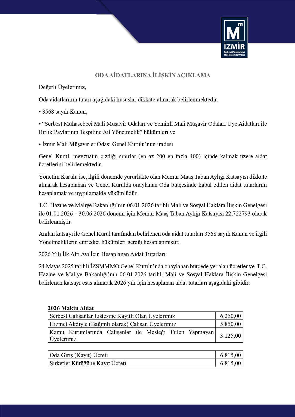 TÜRMOB'un Yayınladığı 2026 Yılı İçin SMMM Asgari Ücret Tarifesi