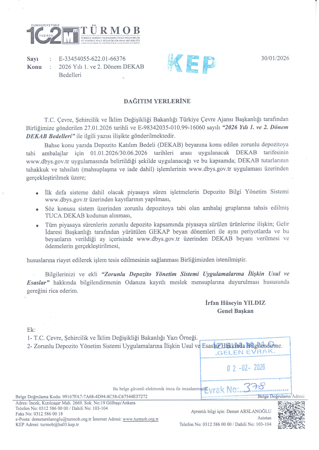 2026 yılı 1. ve 2. Dönem DEKAB Bedelleri