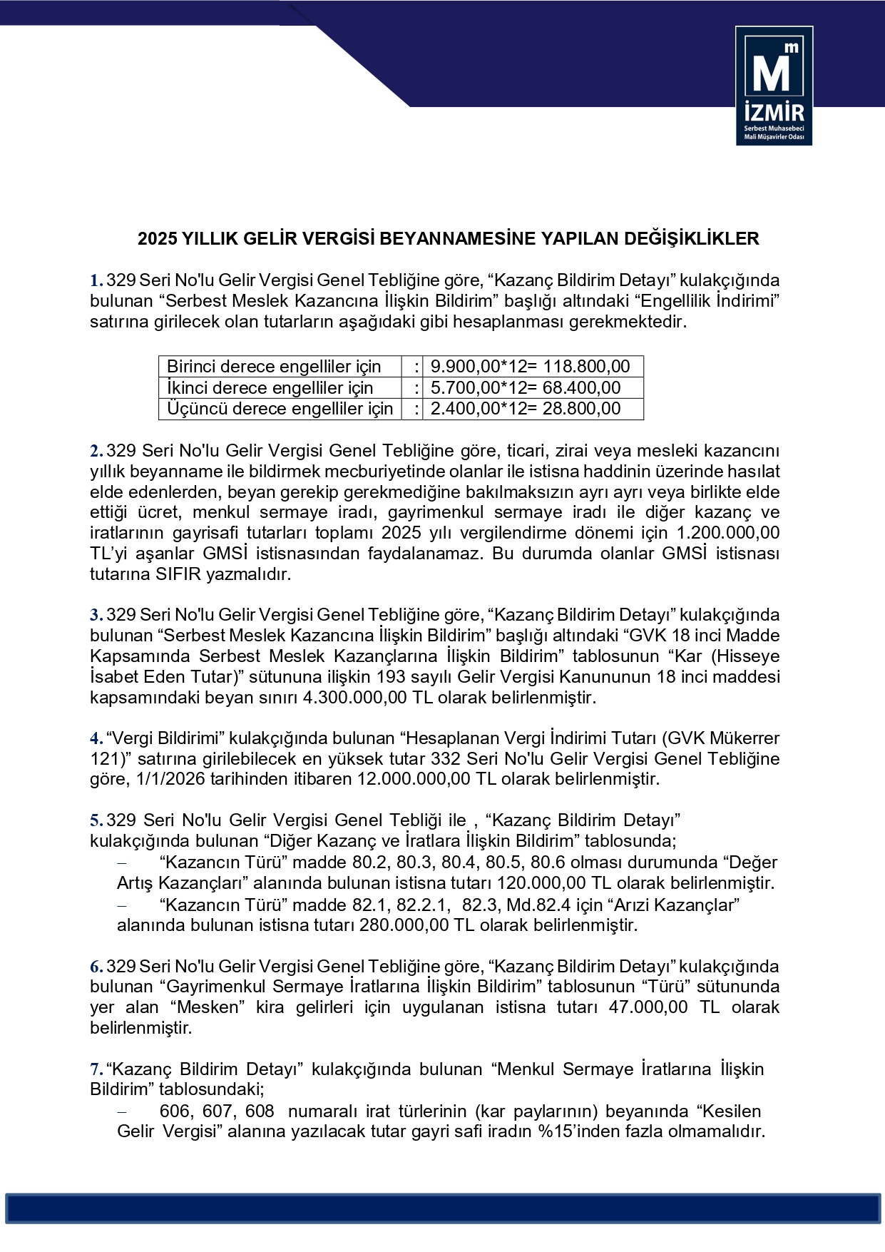 2025 Yıllık Gelir Vergisi Beyannamesine Yapılan Değişiklikler
